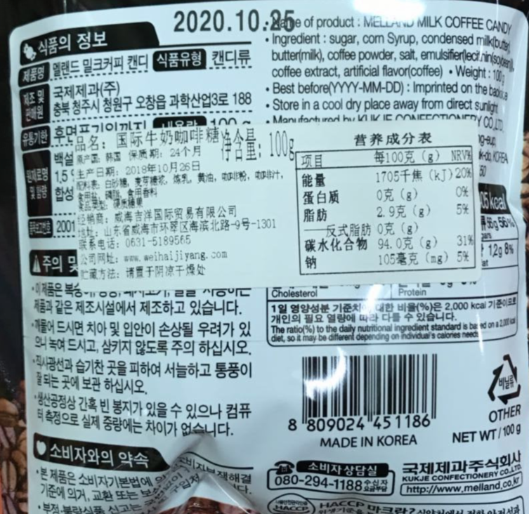 有卫检:国际牛奶咖啡糖100G