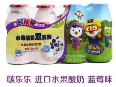 HS有卫检:啵乐乐水果酸奶(蓝莓味)100ML国内产