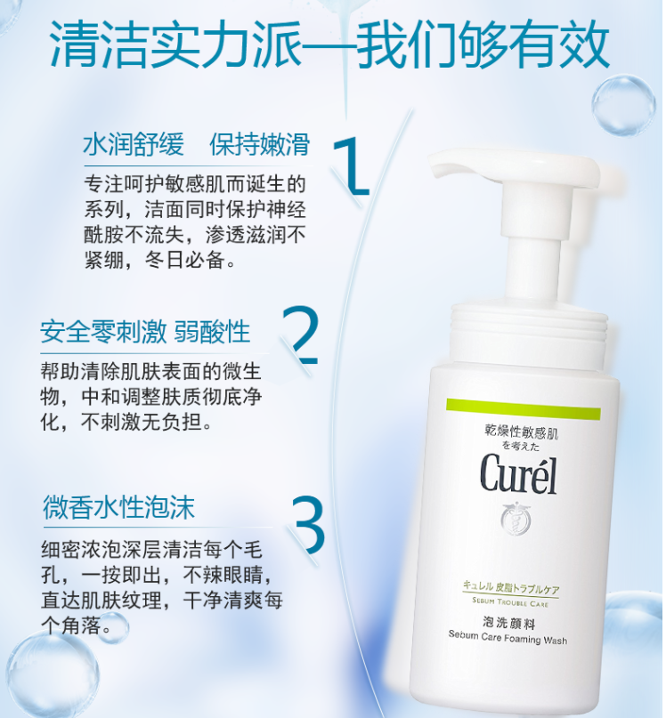 可散出:W日本珂润Curel润浸保湿泡沫洗面奶150ML