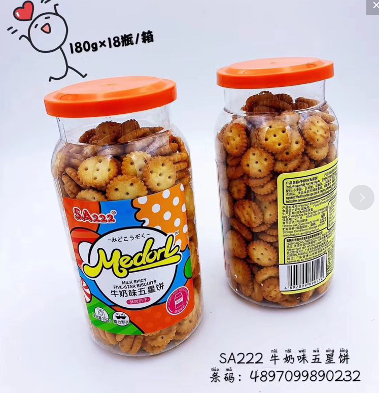 RB有卫检:SA222牛奶味五星饼干180G国产