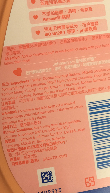 港版强生沐浴露(香桃滋润)1000G(棕)