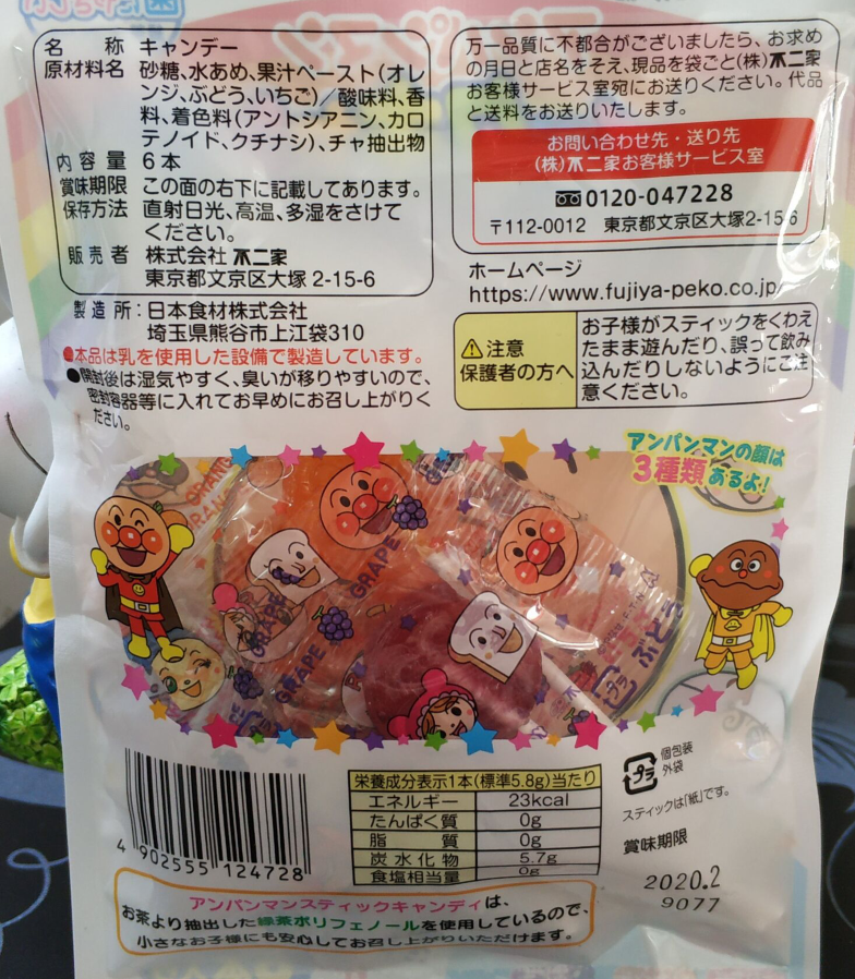 日本不二家面包超人幼齿棒棒糖6枚