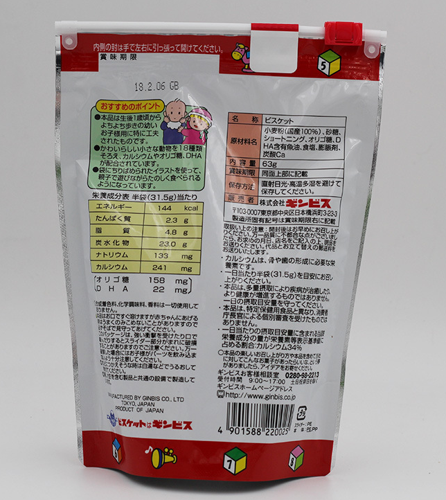 日本进口儿童饼干 63g 金必氏 健康无添加婴儿加钙动物饼干