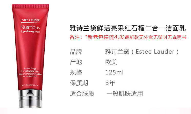 可散出:G雅诗兰黛洗面奶 红石榴泡沫洁面乳125ml 补水保湿 净澈排浊 清透不紧绷 提亮肤色