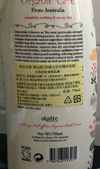 有卫检:J(白)澳泊缇沐浴露(舒缓全效)750ML