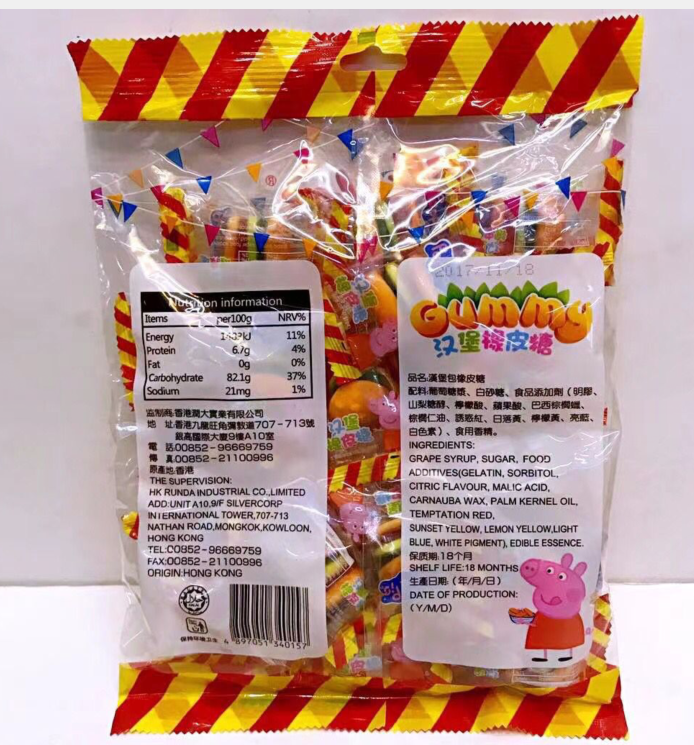 PJ有卫检:小猪佩奇汉堡包橡皮糖250G