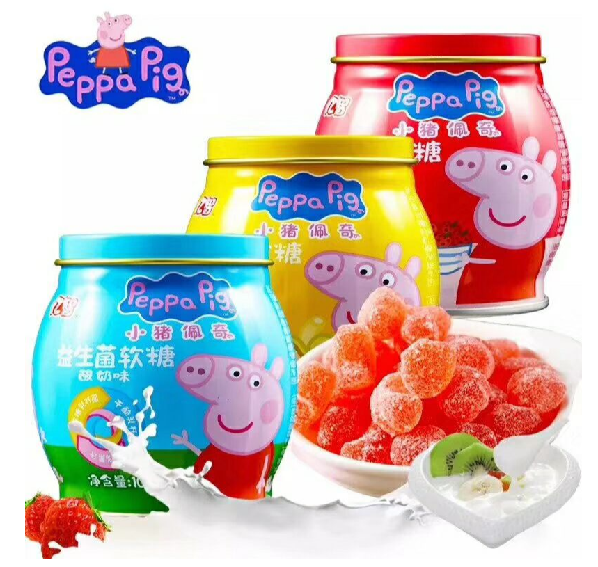 FG有卫检:小猪佩奇益生菌水果味软糖105G(草莓+香蕉+酸奶)三色混