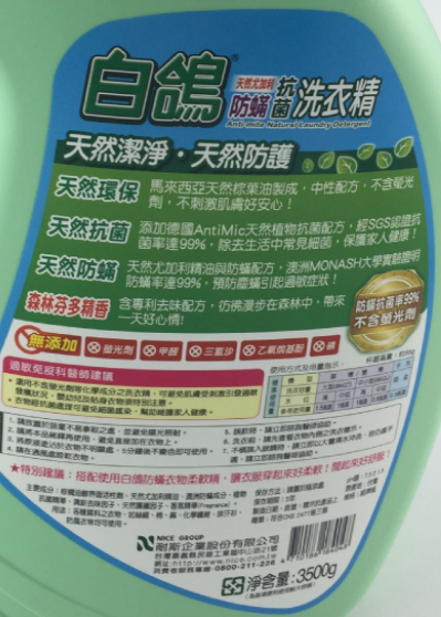 J台湾白鸽浓缩洗衣液(防螨抗菌森林香)绿3.5KG