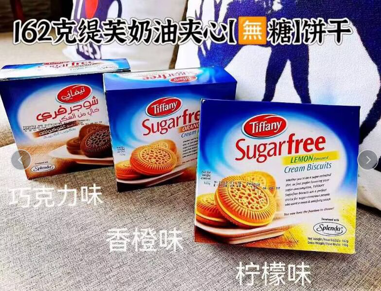HZ有卫检:缇芙奶油夹心无糖饼干(香橙味)162G
