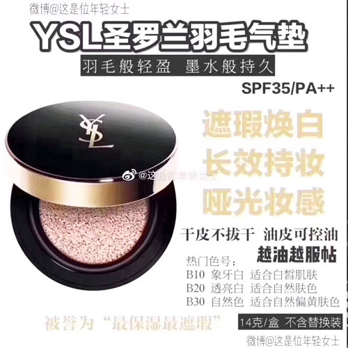 可散出:W圣罗兰气垫BB霜14g(20#自然色)SPF35/FA++(散拿加5元)