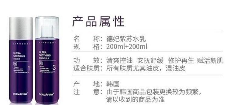 可散出:W韩国德妃紫苏水乳套装(水200ML+乳200ML)升级版