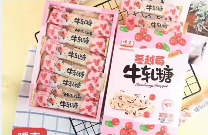 CS有卫检:嚼爽台式蔓越莓味牛轧糖368G