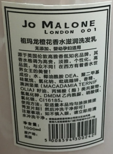 可散出:J祖玛龙橙花香水滋润洗发乳1000ML(粉)委托国内产