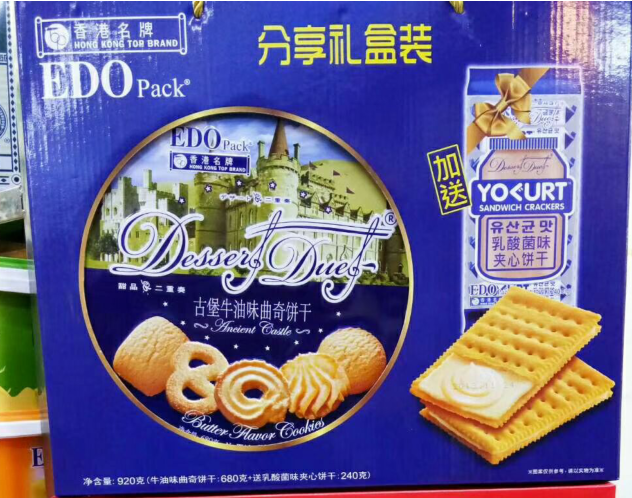 HS有卫检:EDO牛油曲奇饼干680G(加送240G乳酸菌夹心饼干)国代加工