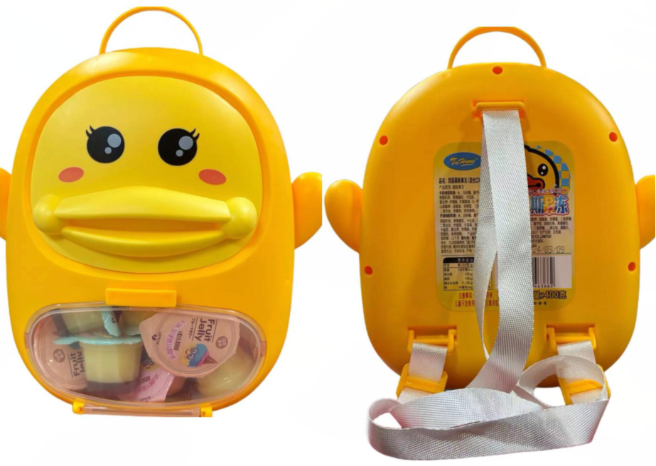 XC有卫检:小黄鸭背包双层慕斯果冻混合味400G国代加工