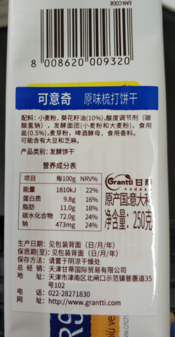 有卫检:意大利可意奇原味梳打饼250G