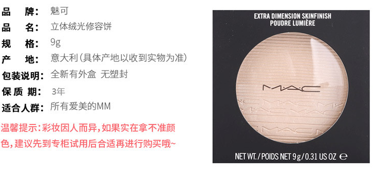 可散出:W-MAC魅可生姜高光粉饼 修容粉底 立体提亮肤色9克
