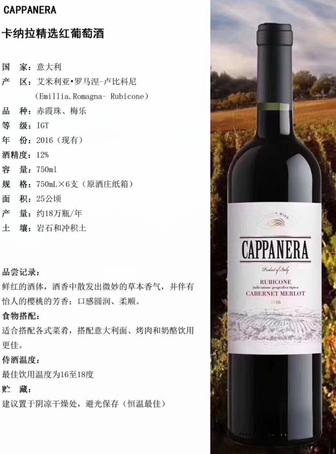 RH有卫检:精卡纳拉赤霞珠梅乐红葡萄酒750ML(酒精度12%)