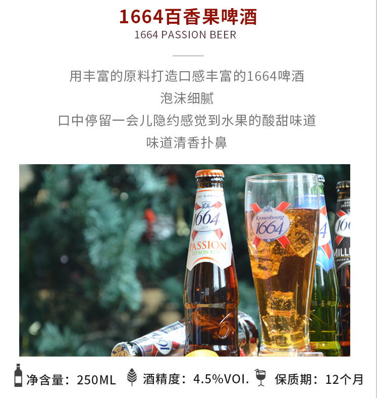LY法国原装进口精酿啤酒1664百香果啤酒250ML酒精度4.5%