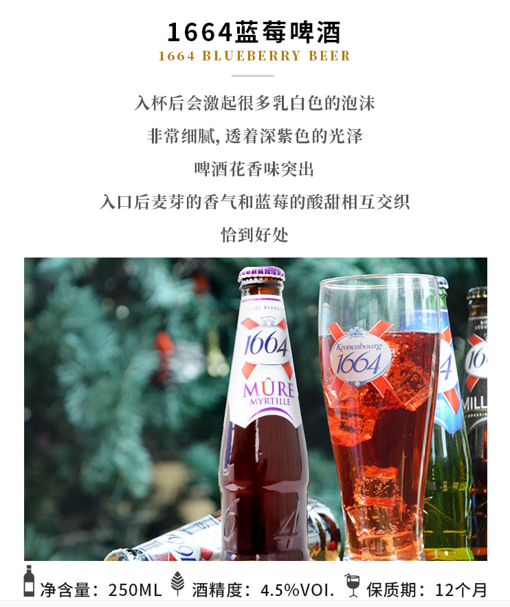 LY法国原装进口精酿啤酒1664蓝莓啤酒250ML酒精度4.5%