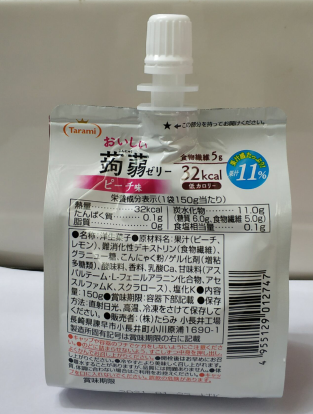 有卫检:日本进口Tarami水蜜桃果汁蒟蒻可吸果冻150g