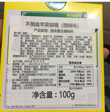 有卫检:不倒翁苹果咖喱(微辣味)100克