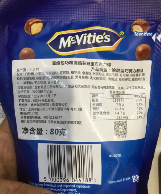 C有卫检:麦维他巧粒脆脆芯双重巧克力球67G