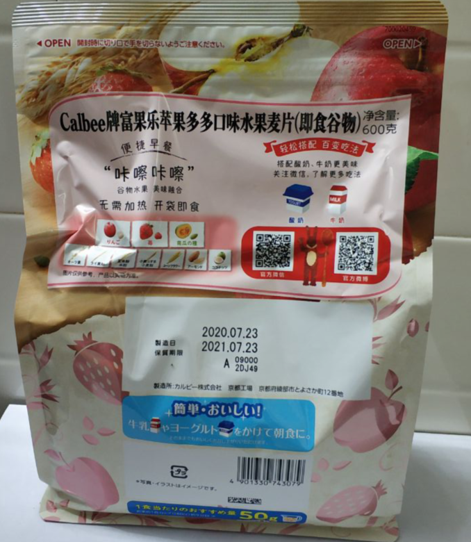 有卫检:Y卡乐B富果乐苹果多多口味水果麦片600G(即食谷物)