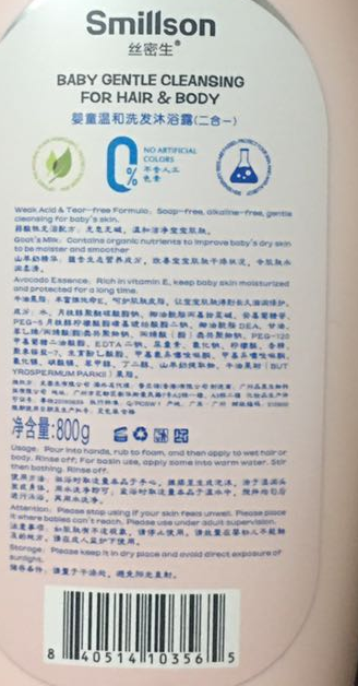 J史密生婴儿-洗发沐浴二合一800ML(温和)委托国内产