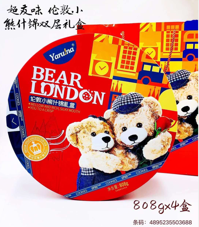 YZ有卫检:超友味伦敦小熊什锦双层饼干礼盒808G配礼袋国代加工