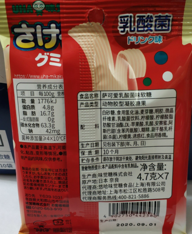 HZ日本萨可爱果汁手撕软糖7枚入(乳酸菌味)