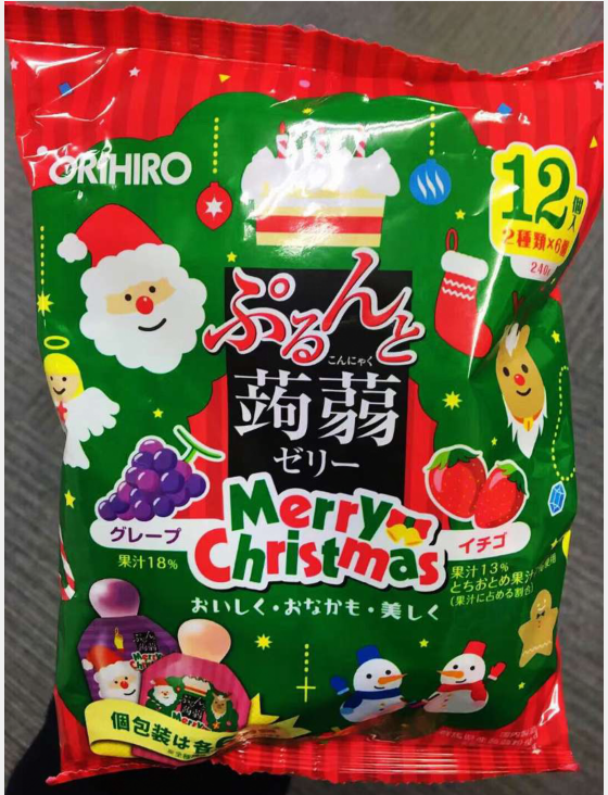 日本ORIHIRO立喜乐圣诞节版超低卡路里蒟蒻水果果冻(提子+草莓)12枚圣诞版