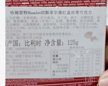 有卫检:FG哈姆雷特Hamlet切斯菲尔德综合巧克力125克(红盒红丝带)