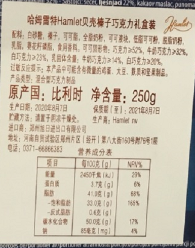 有卫检:HS哈姆雷特Hamlet贝壳榛子巧克力礼盒装250克