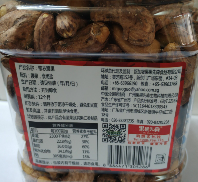 有卫检:果果先森带衣腰果450G国代加工
