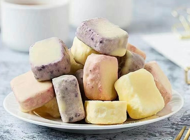YX有卫检:藤野一村冻干蓝莓味酸奶块80G国代加工