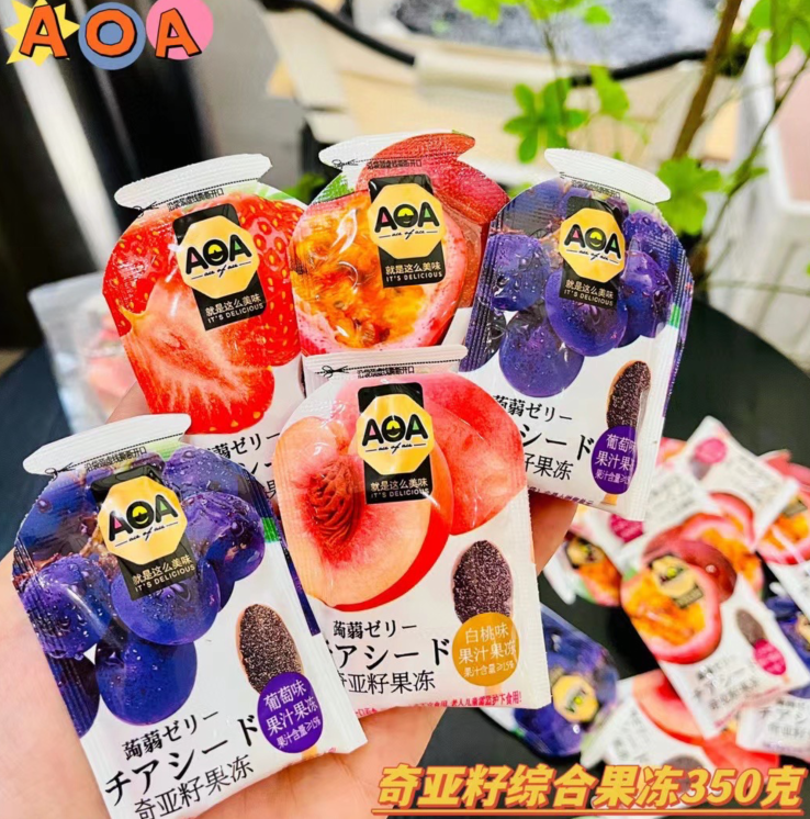 BX有卫检:AOA蒟蒻奇亚籽果冻综合味350G国代加工