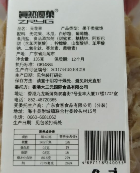 有卫检:真然优果无花果155G