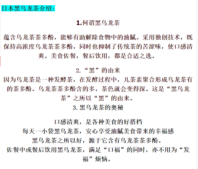 日本黑乌龙茶40包入(减油脂茶)