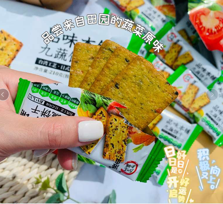 CX有卫检:品味本铺九蔬饼干210G国代加工