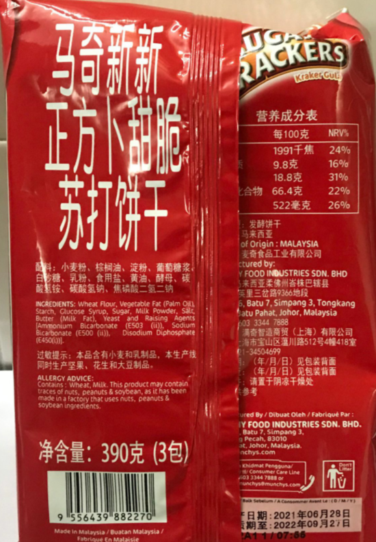 有卫检:马奇新新正方卜甜脆苏打饼干390G