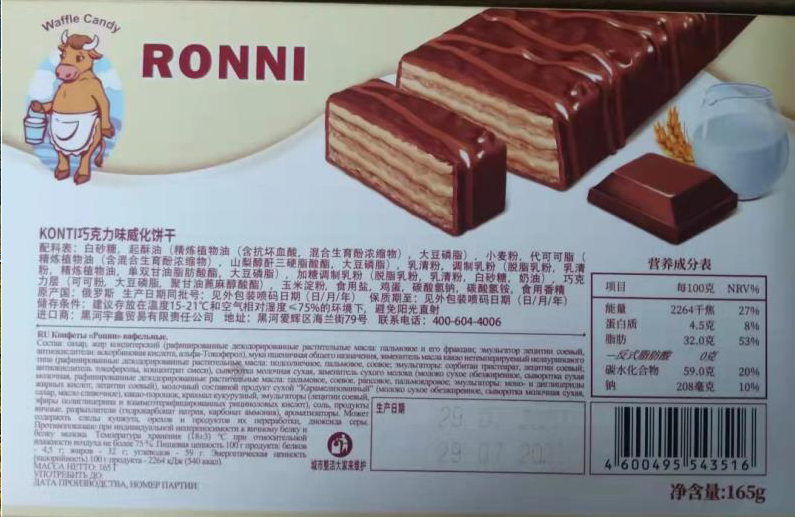 有卫检:俄罗斯康吉大牛三明治饼干165G