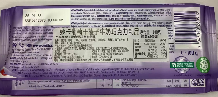 有卫检:妙卡葡萄干榛子牛奶巧克力100G