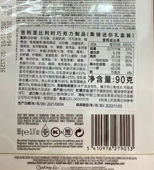 有卫检:吉利莲比利时巧克力集锦迷你礼盒装90G