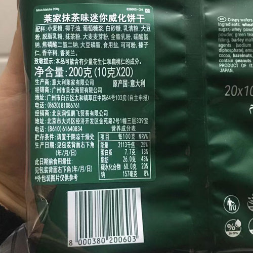 有卫检:莱家抹茶味迷你威化饼干200克(10克*20)