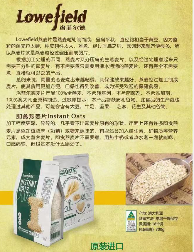 RH有卫检:澳大利亚原装进口洛菲尔德即食麦片700G