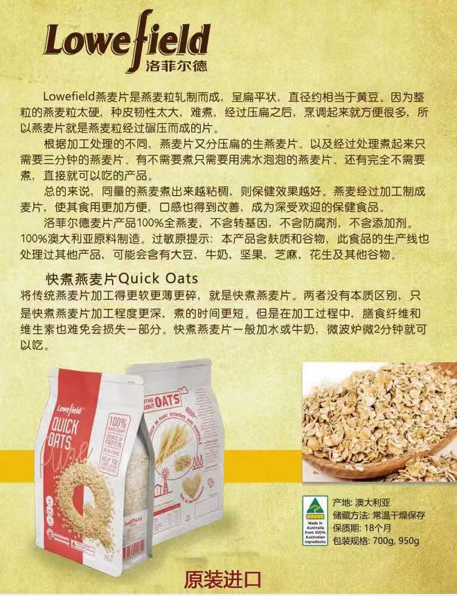 RH有卫检:澳大利亚原装进口洛菲尔德快熟麦片700G