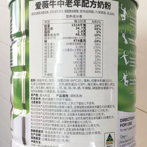 HZ有卫检:澳大利亚爱薇牛中老年配方奶粉800克