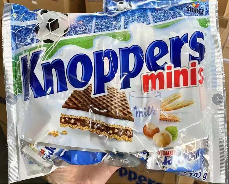 有卫检:德国knoppers牛奶榛子巧克力威化饼干192G