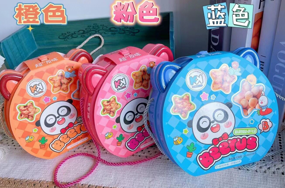 YZ有卫检:KK猫头背包糕点饼干礼盒120G(三色混装)国代加工